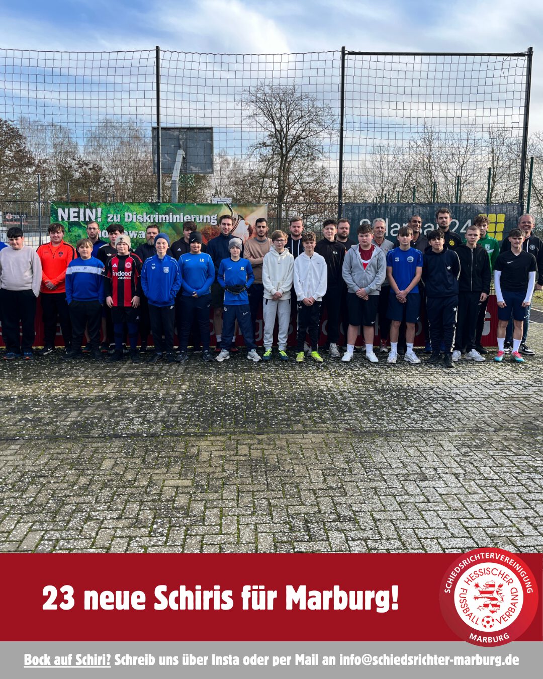 Die Schiedsrichtervereinigung Marburg freut sich über insgesamt 23 neu ausgebildete Schiris.