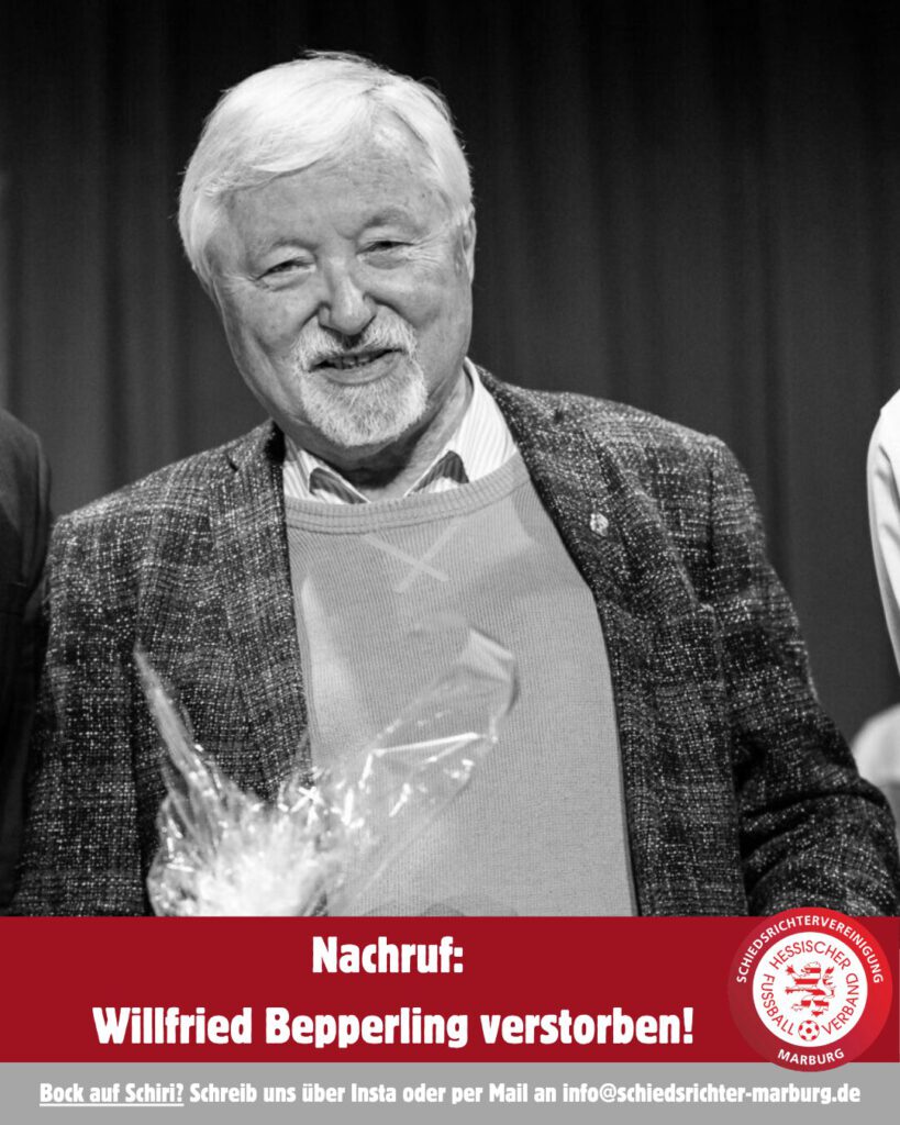 Die Schiedsrichtervereinigung Marburg wird Willfried Bepperling ein ehrendes Andenken bewahren. Unser Mitgefühl gilt seiner Familie und allen Angehörigen.